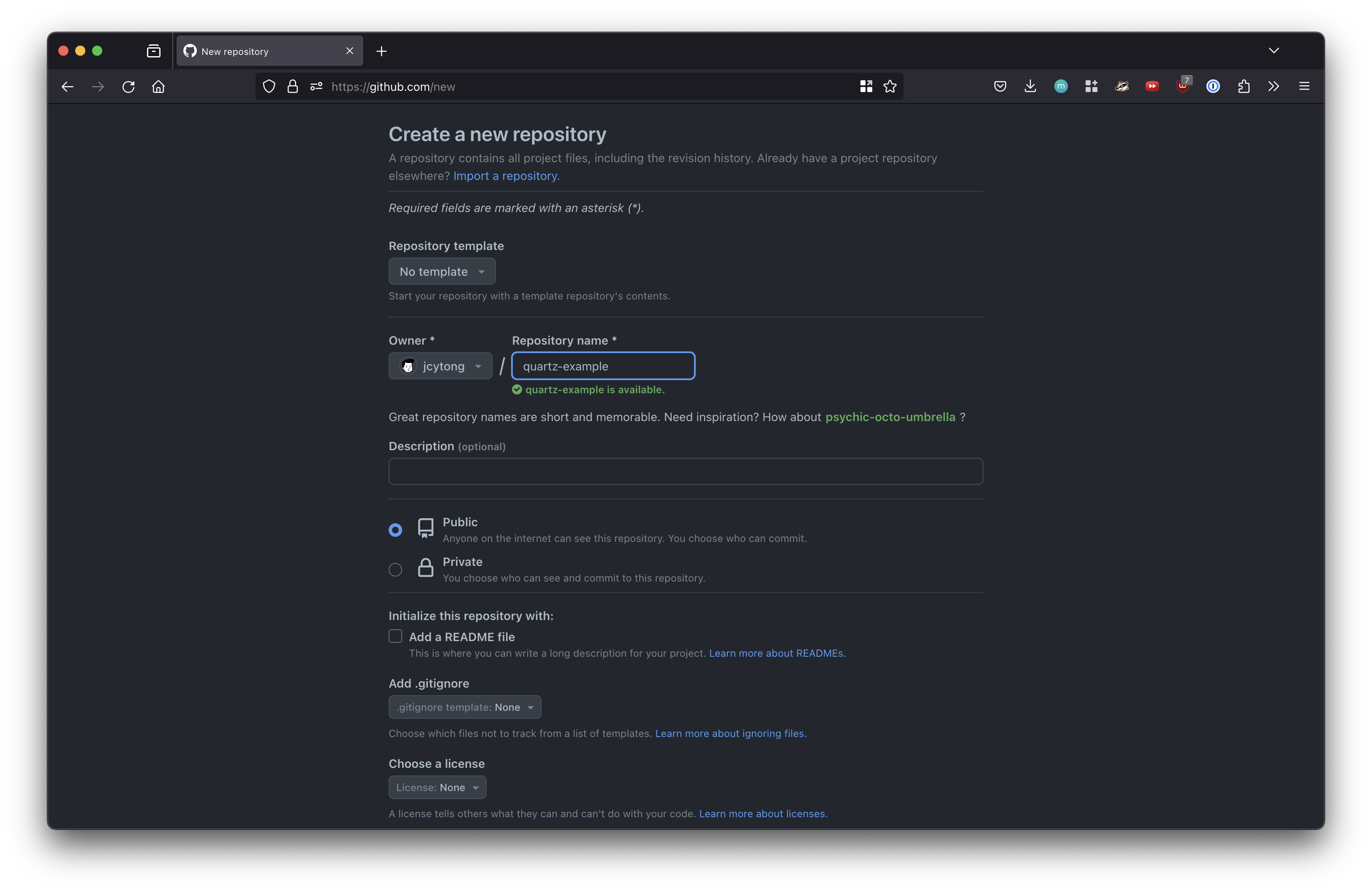 We first need to create a repo on GitHub and make it public (since the pages are going to be made publicly accessible).