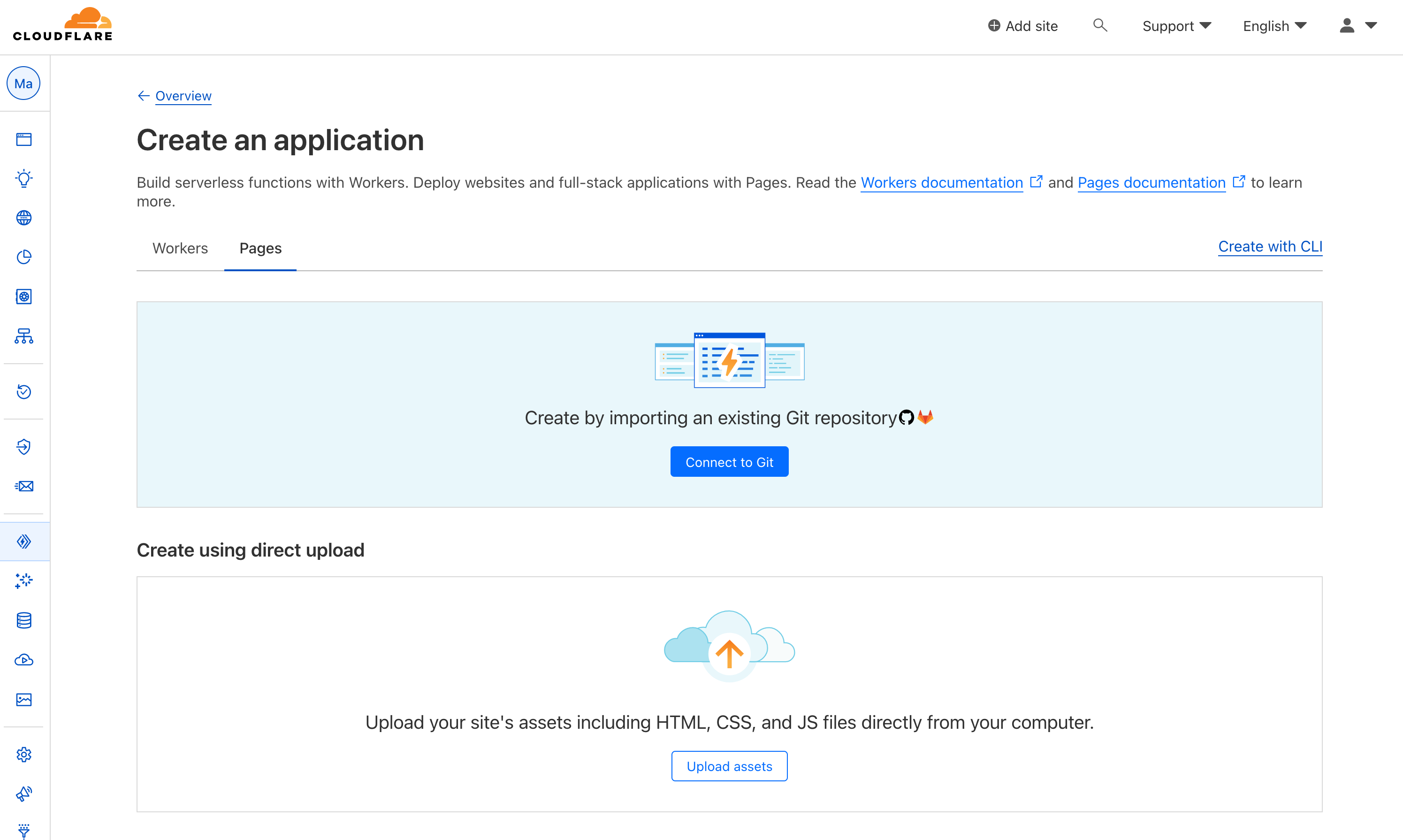 After logging into Cloudflare, head to Workers & Pages and “Create application”.
