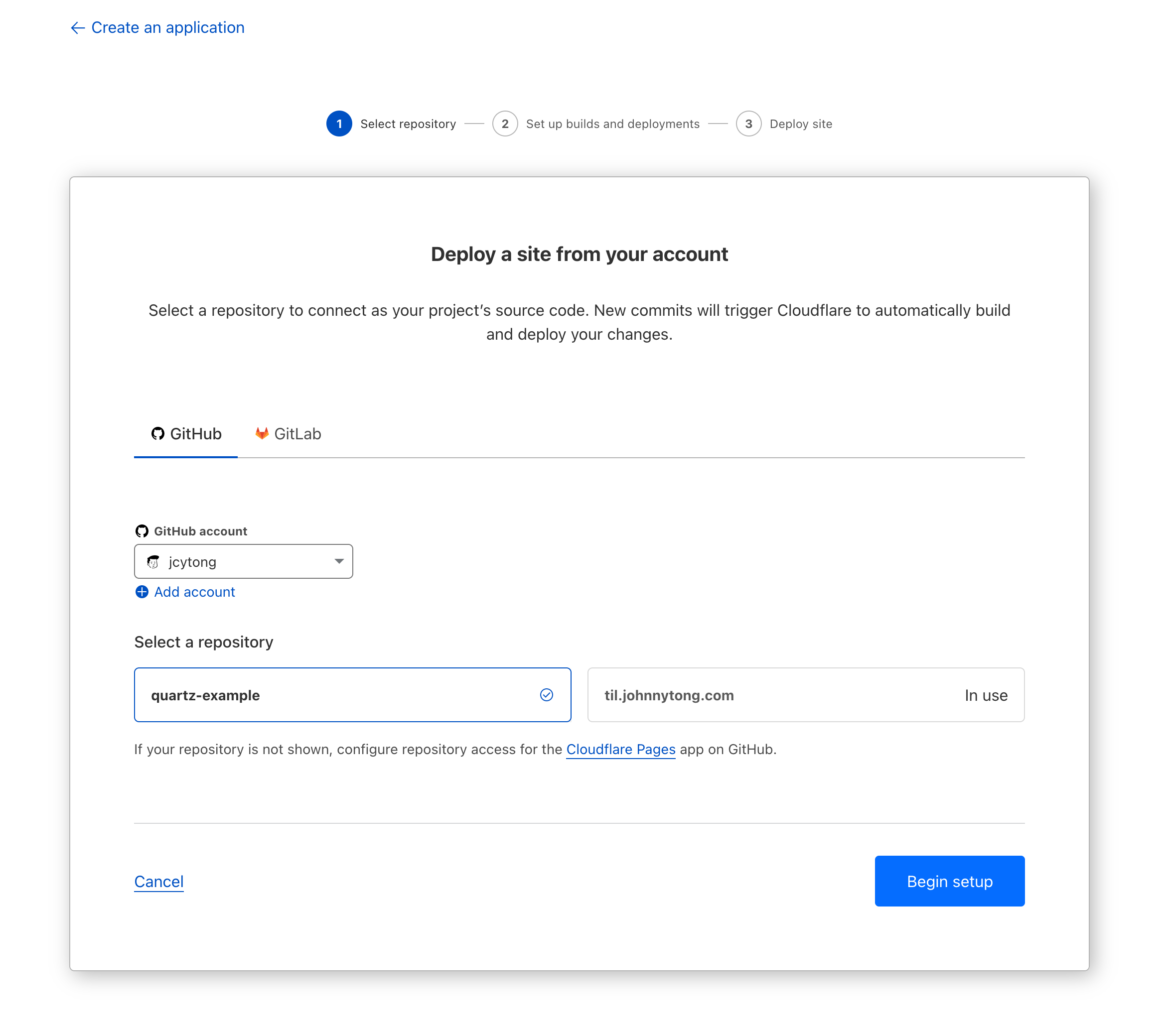 Now that the site is on GitHub, we can connect up Cloudflare.